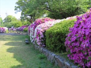 満開を過ぎると、間に植えられた久留米ツツジが小さな花を咲かせ始めるのもポイントです。