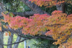 紅葉、水鳥、咲き始めの山茶花、冬へ向けた花壇。