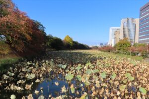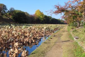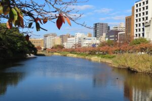 季節ごとに姿を変えるこのエリアは、桜・新緑・睡蓮・紅葉・冬景色まで、街中にいながら自然の四季を体感できる癒しの散歩スポットです。