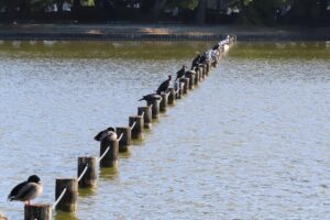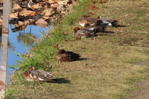 どんぐり公園では水鳥が休憩中。季節ごとに表情が変わる名所です。