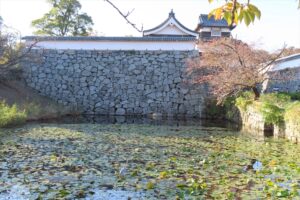 かつて黄色とピンクの睡蓮が咲き誇ったお堀。