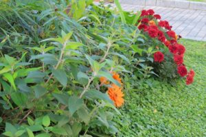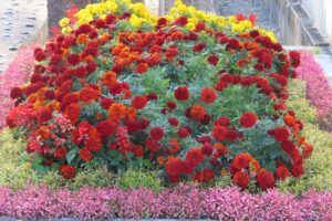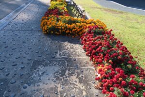 ここでも元気なマリーゴールドたちが訪問者を迎えます。