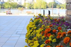 大濠公園に入りガーデニングボランティアによる花壇へ。