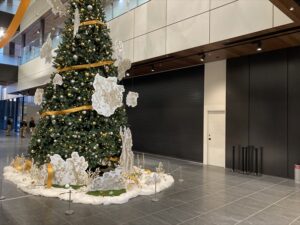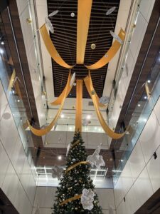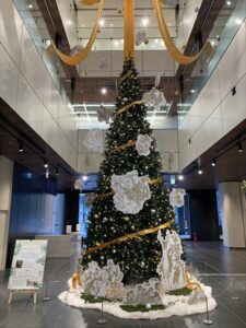 館内中央の吹き抜けに設置された 大型クリスマスツリー は、昼間でも自然光と調和して美しく、写真映えも抜群です。