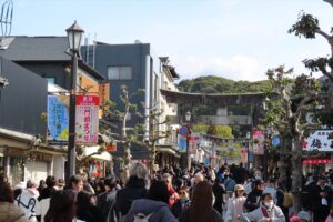 参道では、活気ある雰囲気とともに冬の澄んだ空気が心地よく、自然と歩みがゆっくりになります。