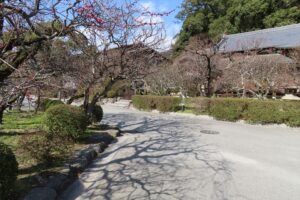 曲水の庭と白梅|境内で最も開花が進んでいた場所