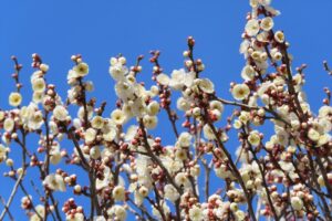 昨年は2月中旬と開花が遅れ、比べると、今年の開花は平年並みに戻った様です。このところ全国で冷え込んでいましたが、静かに咲く梅の花は、厳しい寒さの中で確実に春が近づいていることを教えてくれます。