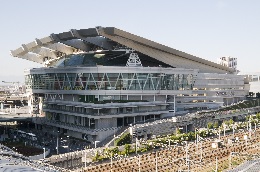 西日が差し込む夕方の美術館前は、